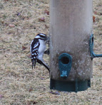 This squirrel posed nicely on the suet pellets for me this morning. It spent quite a few minutes up there just nibbling away. I wonder how it gets anything through the fairly small mesh of the feeder but it must get enough to make hanging there worthwhile.