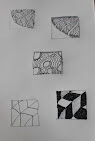 I drew the three daily tangles in the afternoon. I had to draw the first one twice because I didn't think it turned out right the first time. Then I goofed up the lines on the third one so I had to do that one over too.