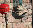 I had better luck with the Red-bellied Woodpecker. It stayed long enough to get its picture taken. You can tell how rainy it was overnight because the suet pellets in the feeder are no longer pellets, they've melted together. The birds don't seem to mind.
