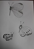 Today's drawing prompt was Butterflies & Moths. I couldn't figure out the examples and then it dawned on me that she'd only drawn the wings on one side of the body. A couple of them had faint lines indicating the other side but most didn't. So that's the way I drew them too. It was kind of satisfying since I can never make the second side match the first. Maybe she has the same problem?